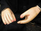 wood. The hands are attached to spring steel and hang down but